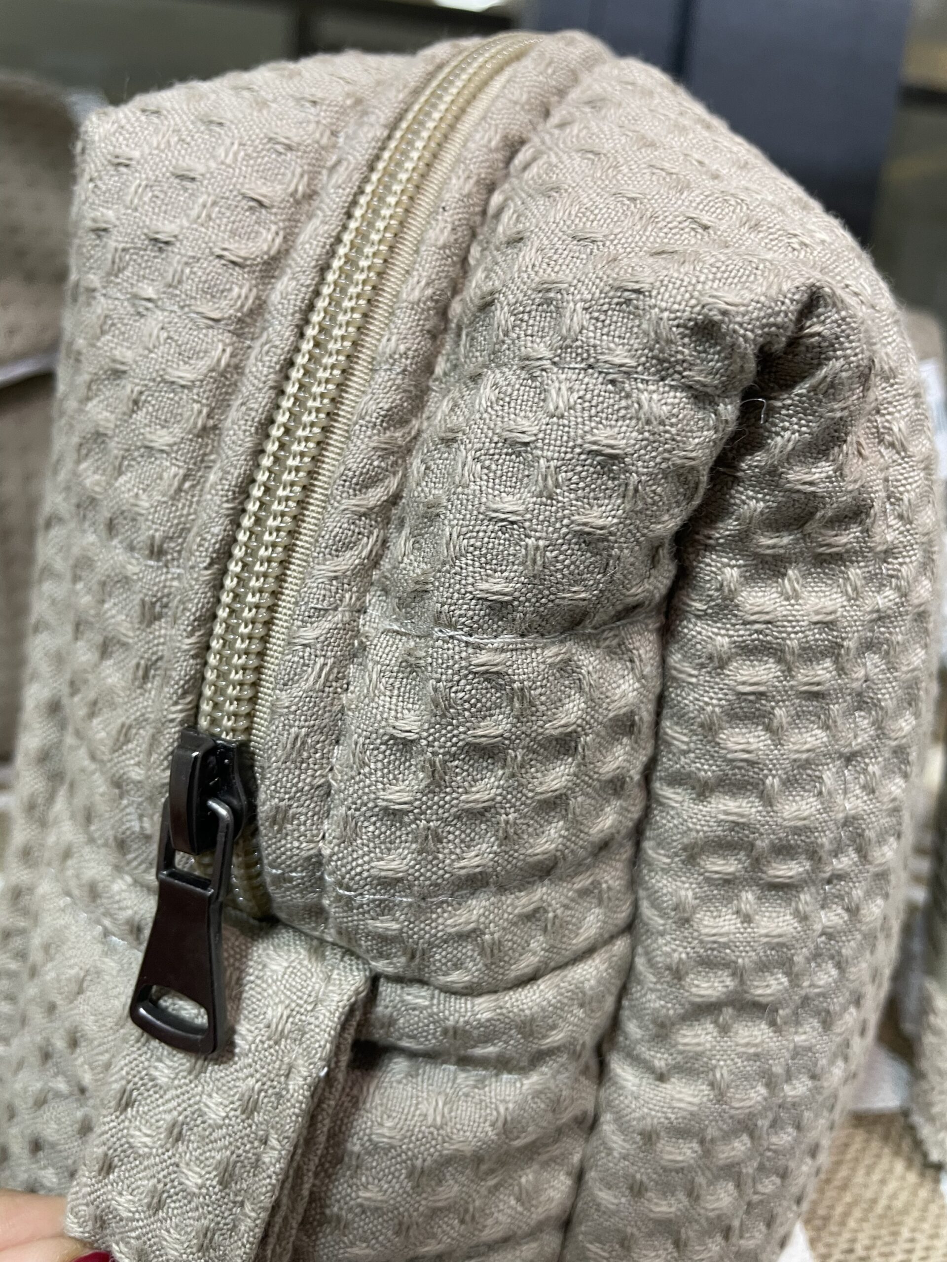 Notre trousse est doté d’un seul compartiment et sa fermeture est à glissière. Il est fabriqué en textile synthétique à l’extérieur et en doublure textile synthétique à l’intérieur.